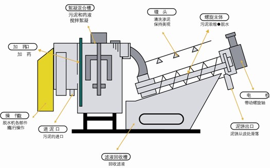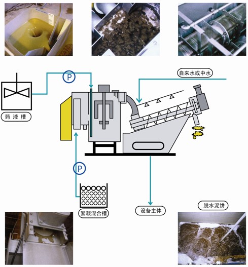 ●    操作盤內設自控裝置,從輸送污泥、注入藥液、濃縮脫水、到排出泥餅,實現24小時全自動